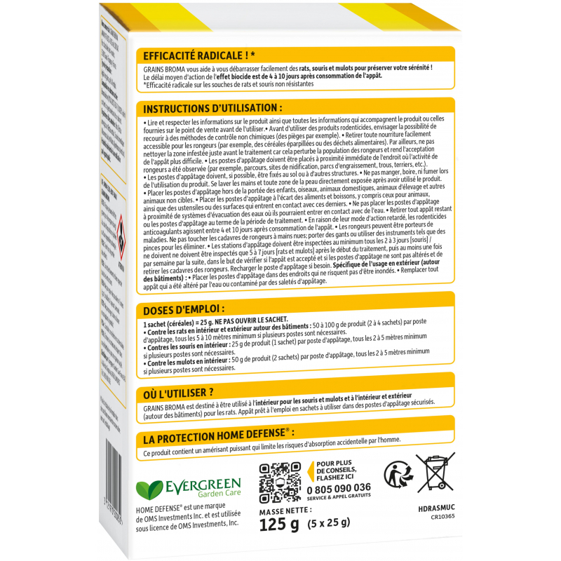 Les céréales anti-rongeurs HOME DEFENSE en étui de 125g constituent un appât prêt à l’emploi spécialement conçu pour lutter contre les rats, souris et mulots dans les zones sèches telles que les intérieurs, les greniers, les combles ou encore les dépendances autour des bâtiments.