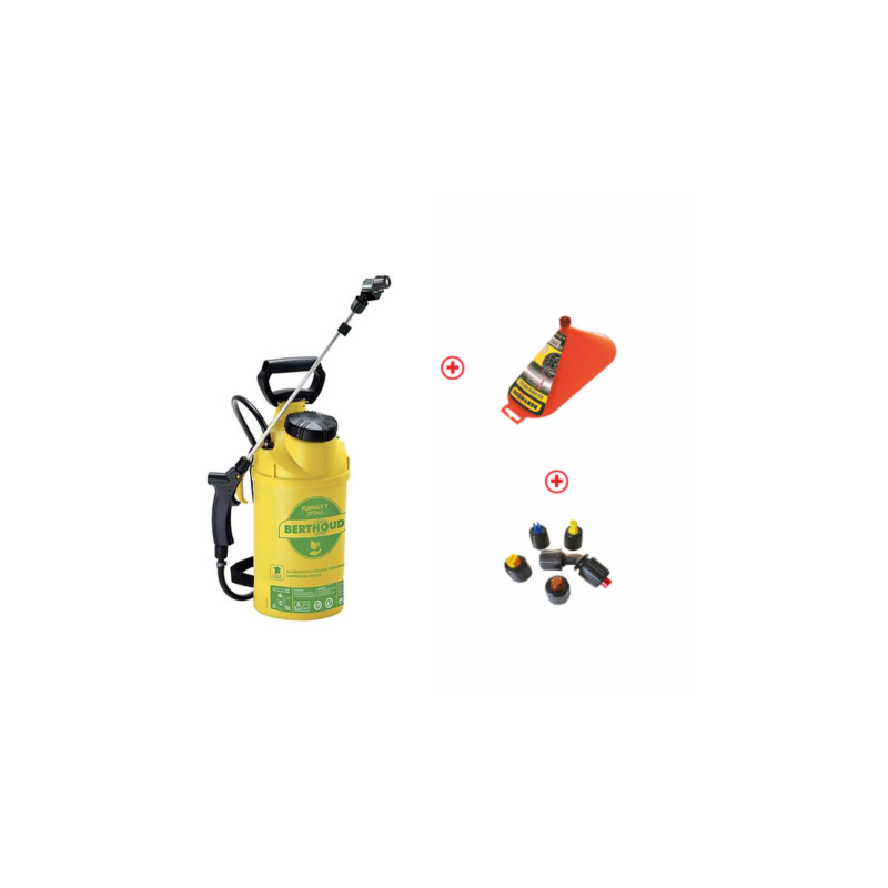 Le pulvérisateur de jardin à main à pression préalable FLORALY 7 OPTIMA 5L de marque BERTHOUD avec le cache de désherbage et le Kit de buses désherbage vous offre un ensemble complet pour désherber vos extérieurs. 50% offert sur les accessoires soit une économie de 18.99 euros TTC.