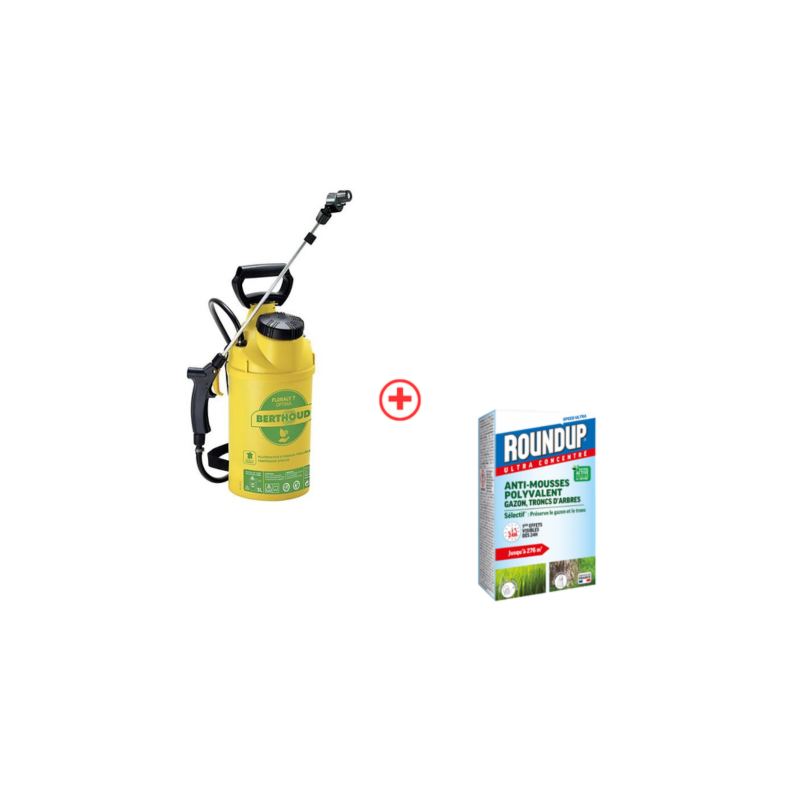 Le pulvérisateur de jardin à main à pression préalable FLORALY 7 OPTIMA 5L de marque BERTHOUD avec l'anti-mousses gazon troncs d'arbres de la marque ROUNDUP vous offre un ensemble complet pour entretenir vos extérieurs. 50% offert sur l'anti-mousse soit une économie de 17.82 euros TTC.